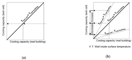 Evaluation of the cooling capacity of the Cooling Radiant Ceiling Panel (CRCP): (a) cooling capacity of the CRCP; (b) over or underestimated cooling capacity.