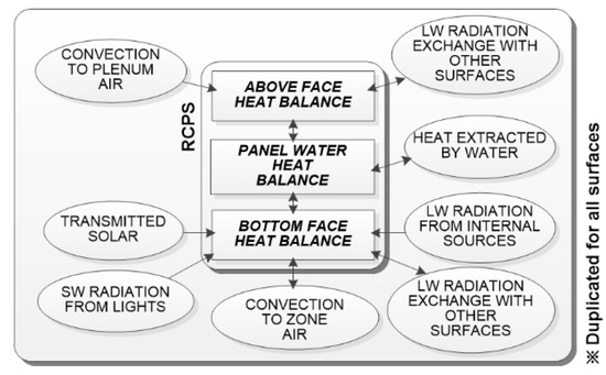 - De Carli, M.; Scarpa, M.; Tomasi, R.; Zarrella, A. A numerical model for the thermal balance of rooms equipped with radiant systems. Build. Environ. 2012, 57, 126–144. [Google Scholar] [CrossRef]