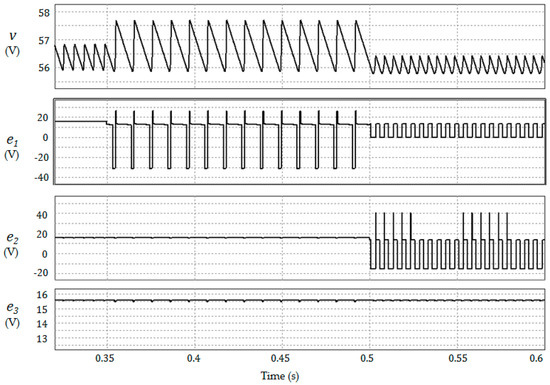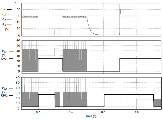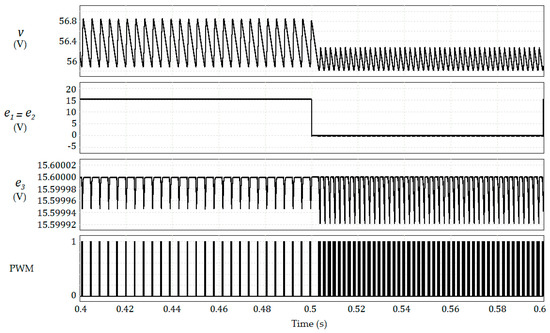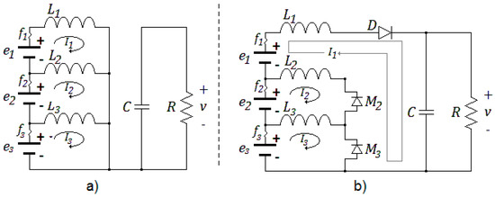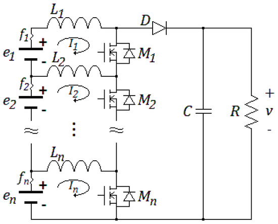 - The -th inductor () is in open circuit. In such case, the circuit behaves as some of cells, where the equivalent voltage source in the respective mesh is now . This change is now considered within the parameter variation ranges of the model without structural modification neither changes on the stability properties.