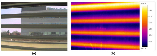 In Figure 12, the infrared image of an east oriented insulated double glazed window with external shading elements can be seen.