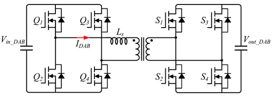 Schematic of dual-active-bridge (DAB) DC-DC converter.
