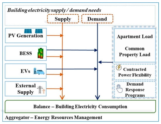 In this way, the building is considered as a single electrical customer, having only one power contract (and not a power contract for each end-consumer), requiring the existence of an entity responsible for the management of all energy resources and that establishes the technical and commercial relationship with the external electricity supplier. This entity can be an aggregator that can also act as an electricity supplier.