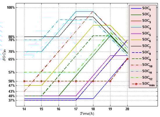 Table 3 shows the values of some parameters regarding the initial SOC of each of the 12 EVs that were considered.