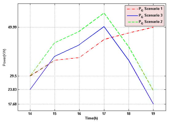 Variation of the demanded power from the grid in all analyzed scenarios.