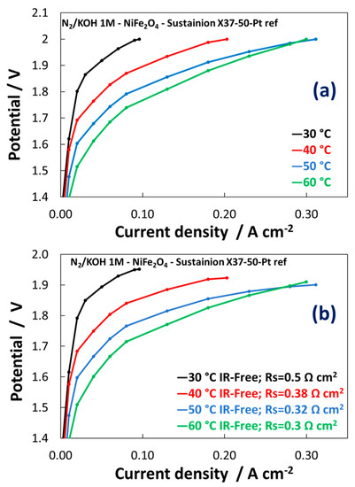 - Pérez-Alonso, F.; Adán, C.; Rojas, S.; Peña, M.A.; Jose, F. Ni/Fe electrodes prepared by electrodeposition method over different substrates for oxygen evolution reaction in alkaline medium. Int. J. Hydrog. Energy 2014, 39, 5204–5212. [Google Scholar] [CrossRef]