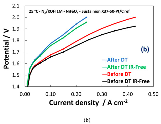 2.4. Electrochemical Characterization in an Alkaline Electrolysis Single Cell
