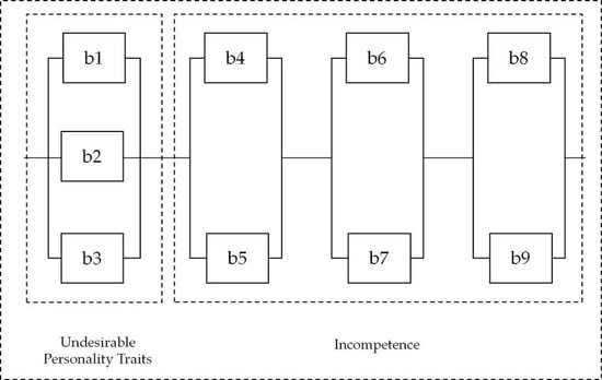 Equivalent reliability block diagram for probable causes due to organisational barriers (O).