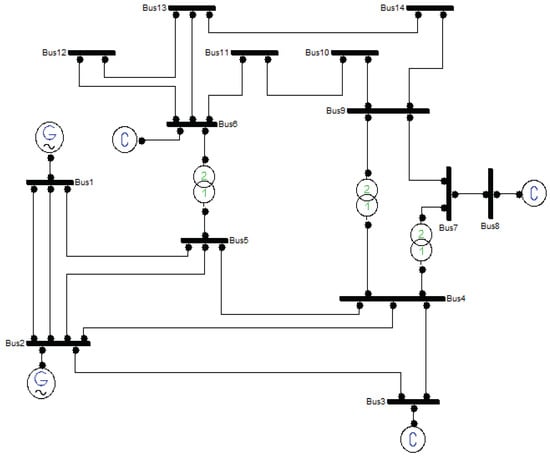 where, is a decision variable vector, whose entry is set to either 1 or 0 to denote the presence or absence of a PMU at bus , is the PMU cost or weight matrix, is the number of buses, , is a vector whose entries are all zeros and ones, respectively, and is a vector function whose entry defines an observability constraint for the bus [11,12]: