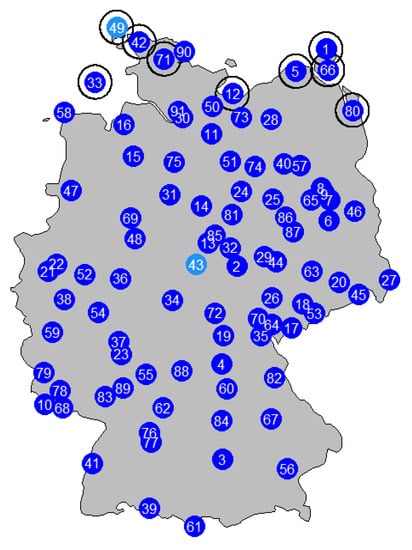 Considered measurement stations in Germany.