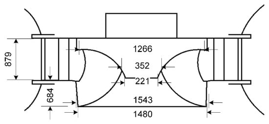 The time-resolved signals of hydraulic axial thrust were analyzed via FFT; Figure 16 corresponds to the results of four different operating conditions; the frequency spectrum plots (a) to (d) denote the total hydraulic axial thrust, hydraulic axial thrust in the runner blade, hydraulic axial thrust of the runner hub, and hydraulic axial thrust of the runner shroud, respectively. There are three kinds of dominant frequencies and their corresponding harmonics, including the RVR frequency, the RSI frequency fgv and frunner. For the operating point of 13 deg GVO, the highest pulsation amplitude belongs to the guide vane passing frequency, fgv; while for the other three cases, the highest pulsation amplitude corresponds to the RVR frequency. It can also be concluded that the highest pulsation amplitude of total hydraulic axial thrust increases with the deviation of the operating point from the BEP. With regard to the runner components, the fluctuation amplitude of hydraulic axial thrust in the runner hub makes up a large part of the total hydraulic axial thrust; the proportions for the four operating conditions are 88.26%, 83.44%, 90.60%, and 86.83%, respectively. This regularity makes sense because the runner hub results in the change of direction of the flowing water (from radial to axial direction). The fluctuation amplitude of hydraulic axial thrust in the runner shroud accounts for the smallest part of the fluctuation amplitude of total hydraulic axial thrust compared to the other runner components. This could probably be explained by the small area of vertical projection of the runner shroud. As for the runner blade, its insignificant fluctuation amplitude of hydraulic axial thrust is due to both the superposition of positive and negative pressures on the pressure and suction sides (see Figure 17) as well as the tiny area of vertical projection. Figure 18 shows detailed dimensions of the runner, which may help interested researchers figure out the effect of variation of hydraulic axial thrust on the bearings and loadings.