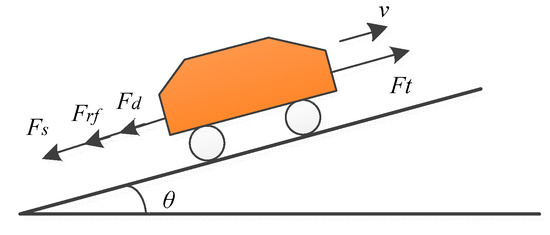 As illustrated in Figure 1, the vehicle travels on the horizontal flat road with the uphill and downhill depicted by the slope angle of the road. The total driving force can be formulated as follows.