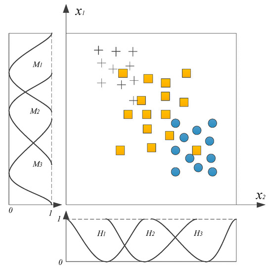 When the input variables of the system are increased, the number of rules go up exponentially. This means that the GP method was no longer suitable. The scatter partition method was exploited to solve the problem. By using a clustering algorithm, the input space was divided into n clusters. The specific area was split by the number of n clusters and the amount of each specific area determines the numbers of fuzzy rules. Thus, the number of groups was the number of the rules in the scattering partition algorithm. Based on the clustering method, scattering partition can be categorised into different kinds: SC [25,26], context-based fuzzy C-means clustering [27], and fuzzy C-means clustering [28].