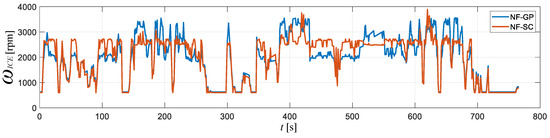 The revolutions per minute of the engine generated by NF-GP and NF-SC methods.