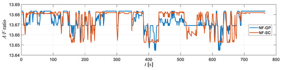 The fuel consumption rate of the engine by NF-GP and NF-SC methods.