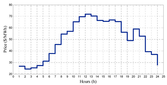 As can be seen, the objective function, Equation (11), is to minimize EV owners’ payments for purchased energy. Constraint (12) shows the SOC of batteries at departure time. Moreover, the best retail price for EV owners is that which can provide energy according to real-time prices. This limit is determined via (13).