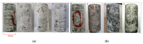 The glauberite specimens before and after testing. (a) the specimens before testing; (b) the specimens after testing.