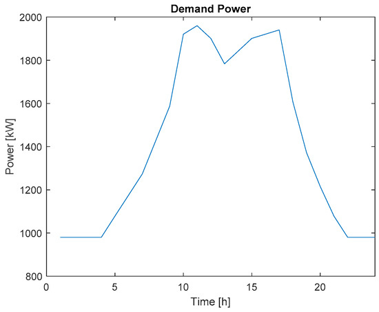 Load requirements with peak load of 2000 kVA with industrial demand curve [45].