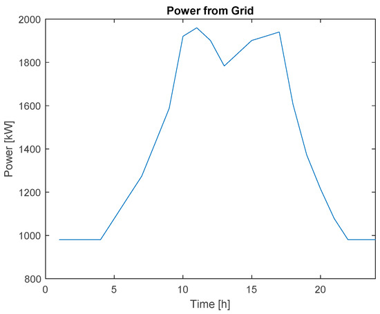 In this case study, the load was operated with only the grid. As a result, the power from the grid in Figure 3 was identical to the load demand in Figure 1. This case was used as the benchmark since it was assumed that the current method to operate the load was solely using power from the grid. The cost for running the plant over 25 years would be approximately 22.9 million CAD when compared to present day value, as seen in Table 6.