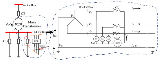 The single line diagram of LCO protective relay in the three-phase, four-wire distribution systems.