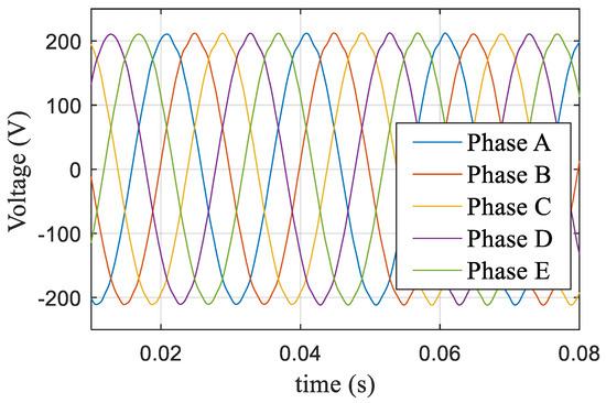 Five-phase voltage based on the new algorithm at m = 1.0514.