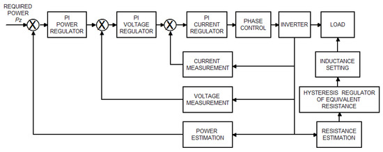 The functions described above enable the implementation of the control algorithm, the main purposes of which are to control the power supplied to the IHS, while maintaining the system in resonance, and changing the energy match (but only when necessary). The proposed cascade regulator of the generator control is shown in Figure 13.