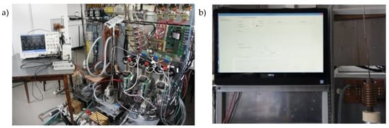 The “outer” part is the master computer, via which the operator communicates with the system, using its Human Machine Interface (HMI). The master computer is used to set the heating process parameters—in the form of two quantities, the heating power and the frequency of the inverter—within the permissible range of deviation, which is based on technological process requirements known to the operator. The executive system performs tests in a frequency range from 10 to 100 kHz to determine the actual state of the system, and the computer program selects values of four basic parameters providing the best fit to the connected IHS, i.e., the resonance frequency, series inductance Ls, the configuration of the three connected inverters, and the value of the resonant capacitor CR. The computer application also allows, in a predictive way, to take into account the probable changes in system impedance caused by the changing temperature of the heated charge [23].