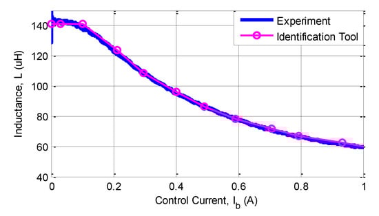 Figure 16 compares both methods of inductance calculation to verify the accuracy of the measured inductance and then uses it to assess the proposed model. It shows that the inductance calculated based on RMS values is in very close agreement with the inductance obtained by the Matlab® identification tool. This conclusion justifies the use of RMS measurements for calculating the inductance in the large-signal analysis in order to simplify the computations.