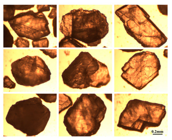 The media with different particle sizes were successively placed in an image particle analyzer (Model BT-1600, Bettersize, China) to observe their shapes. The particle shapes of quartz sand 1 with the size of 0.63–1.25 mm are shown in Figure 2.
