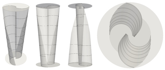 Figure 2 depicts seven cross-sections (equally distant) along the rotation axis for the SAVANT prototype. It is observed that the resulting geometry can be compared to a traditional helical Savonius turbine with a twist angle of 90°.