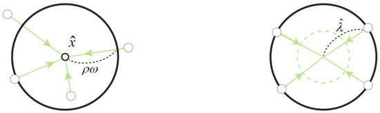 The NC in (24) is relaxed and added to the objective in (25), where is structured artificially for each scenario as studied in [16,29]. Therefore, dual variable is shared with corresponding scenarios in same nodes, assuming that the difference is indicated by respective to the same radius as depicted in Figure 2. The underlying problem becomes maximising objectives concerned with , and is ignored as derived in the second line of (25). It should be noted that subproblems are still minimising objectives regarding as denoted in the third line of (25).