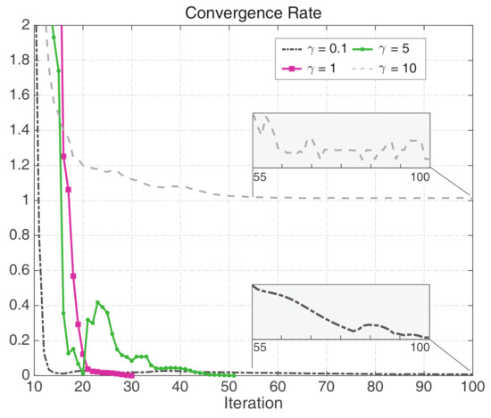 Thus, the stability centre can be updated if the actual improvement is larger than of the estimated improvement as given in (31). The convergence of variables is thus indicated when there is no expected improvement of the bounds of (27) such that . In each iteration, the step size is calculated according to results of (31) and (32) to smooth the heuristic searching process. When the actual improvement is too small, the step size decreases; on the other hand, when the actual improvement is sufficiently high with as given in (32), the step size increases. The step size is determined as follows:
