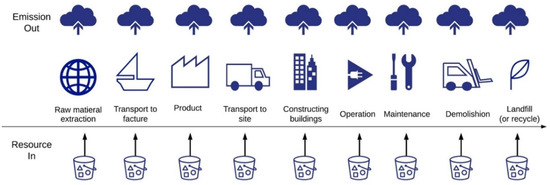 - British Standard Institutions (BSI). BS EN 15978 Sustainability of Construction Works Assessment of Environmental Perforamnce of Buildings—Calculation Method; British Standards Institution: London, UK, 2011. [Google Scholar]