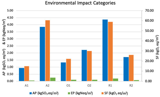 Environmental impact categories: AP, EP and SF.