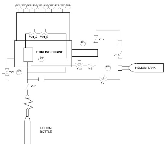 - operation of the YV1 valve for charging the He circuit of the Stirling engine at 80 bar;
