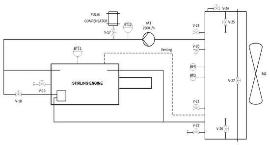 - main circuit of the Stirling engine (working fluid—Helium);