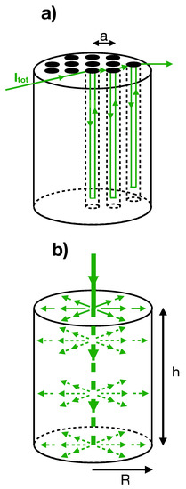 The model coarse-grains this system, treating it as a cylinder of radius R and height h oriented along the z-axis (Figure 1b).