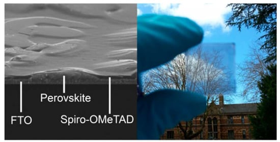 Horäntner et al. [71] observed that this process produces shunting paths in the “de-wet” island morphology, resulting in an undesired contact between electron and hole transporting layers, by-passing the photo-active micro-islands. This produced a reduction of photocurrent density. The resulting “shunt paths” reduce the shunt resistance and also the fill factor parameter. Horantner et al. coped with it by selectively filling the uncovered regions by means of an insulating material, i.e., octadecyl-siloxane molecules, acting as selective electronic insulating barriers; in fact, they attached to the exposed surface of compact TiO2, without affecting charge transport in the perovskite islands. Thanks to this behavior of octadecyl-siloxane in the device architecture, they obtained an increase in conversion efficiency up to 6.1% for neutral coloured semitransparent perovskite cells, with a really high device AVT, reaching approximately 40%.