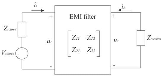 Electromagnetic interference (EMI) filter representation by its impedance matrix.