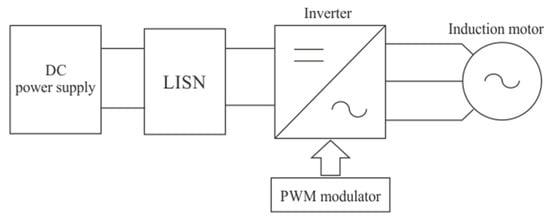 A home-built DC line impedance stabilization network (LISN) [28] and a DC power supply are included in the experimental arrangement, as shown in the block scheme of Figure 3.