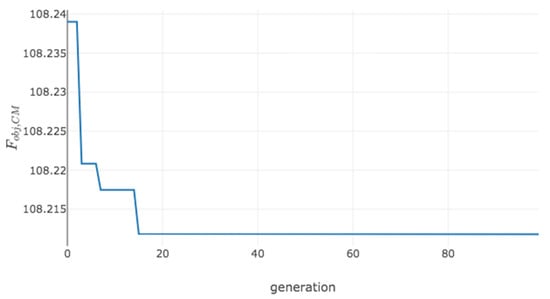 This function makes sure that the optimal is as close as possible to but always greater than it. Figure 9 shows the evolution of its value for the best individual of each generation for the presented case study, and this indicates that the chosen number of generations and population size are adequate for the algorithm to converge to a solution.