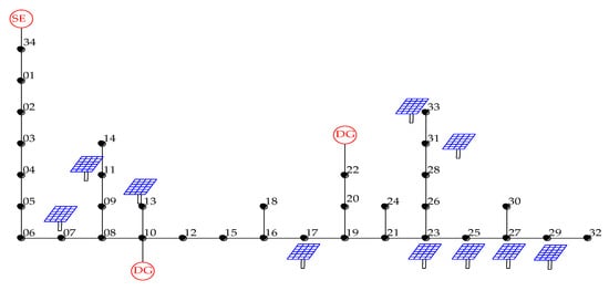 - IEEE PES AMPS Distribution Test Feeders, 34-bus Feeder, August 2011. Available online: https://site.ieee.org/pes-testfeeders/. (accessed on 4 December 2019).