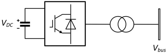 The STATCOM is a particular type of VSC. It is composed of a capacitor, which acts as a voltage source, and a series of fast electronic switching devices; mainly IGBTs or GTOs (Figure 5). STATCOMs are intended to dynamically generate or absorb reactive power in a fast and robust way, since no moving parts are involved and low voltages do not affect its operation [3]. These devices are often connected to a step-up transformer and can be modeled either as a variable voltage source or a synchronous condenser for steady-state studies (Figure 6).