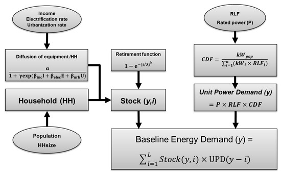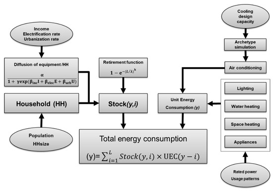 24]. The driver variables of this model were based on macroeconomic variables such as population, household size and income and engineering variables like unit energy consumption, and efficiency ratings.