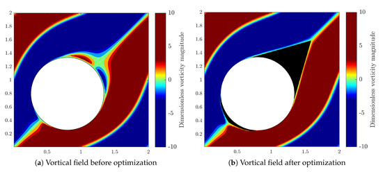 It should be noted that the drag force by integration of Equation (17) is calculated at a very low computational cost, in the absence of explicit knowledge of solid–fluid boundary. This is a great advantage of penalization technique in favor of topology optimization where the geometry varies during the optimization process and an accurate drag values at intermediate steps are required and explicit boundary tracking is not always straightforward.