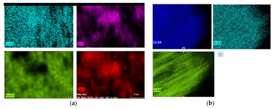 Elemental mapping of fresh oxygen carriers with (a) Fe-Cu oxide on an Al2O3 support, and (b) Fe-Ca oxide.