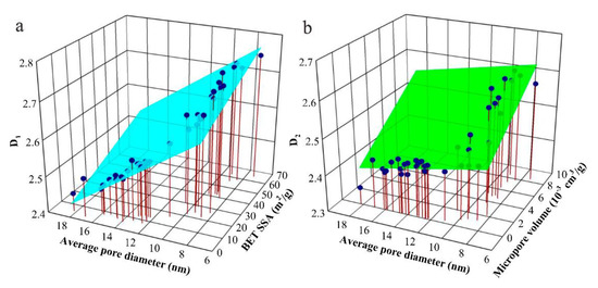 5.3. Prediction of Fractal Dimensions with Pore Structure Parameters