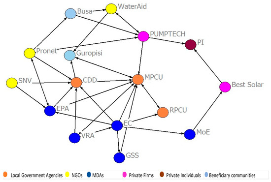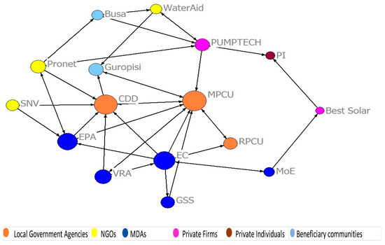 The sustainable energy actor-network in the Wa municipality (Source: Authors’ conception, created with the NETDRAW component of UCINET 6 [49].
