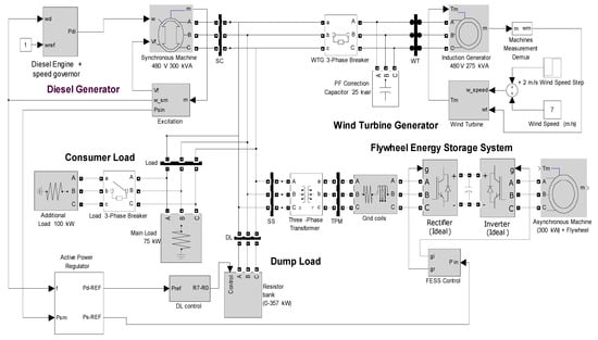 Simulink-SimPowerSystem of the WPDS with Dump Load and Flywheel Energy Storage.