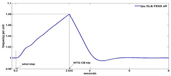 WDPS frequency per unit for the DL and Flywheel Energy Storage System (FESS)-off case.