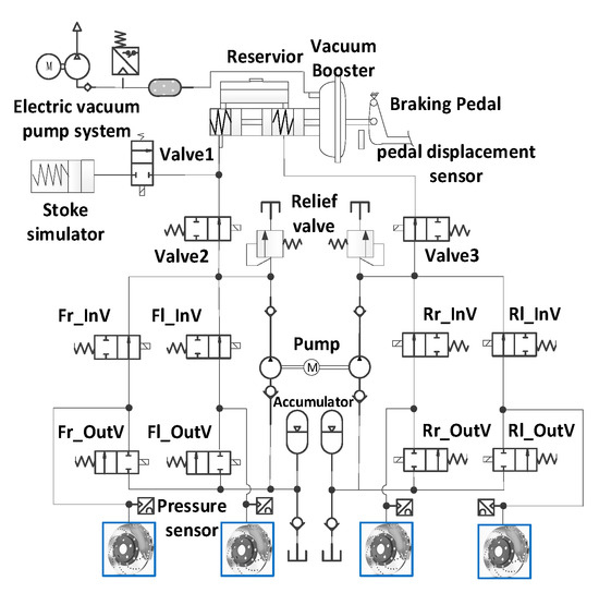 - Yang, Y.; Li, G.; Zhang, Q. A Pressure-Coordinated Control for Vehicle Electro-Hydraulic Braking Systems. Energies 2018, 11, 2336. [Google Scholar] [CrossRef]